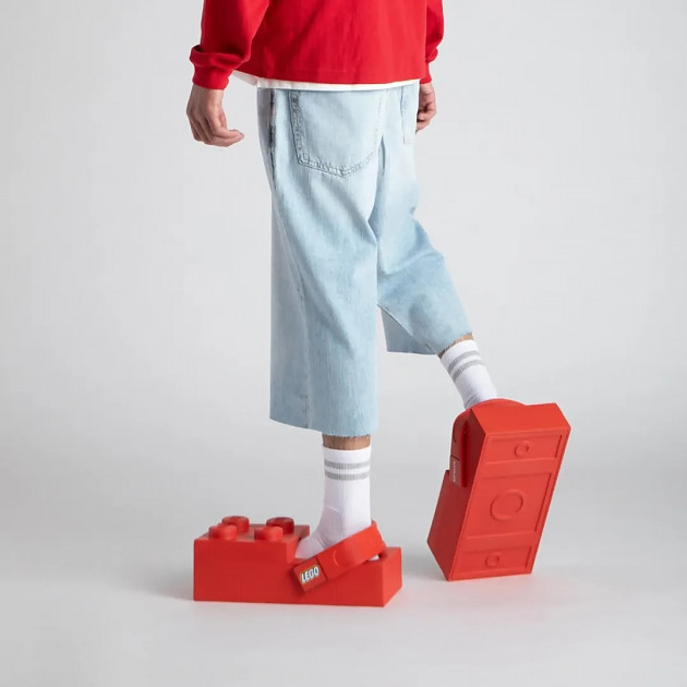 超大码Clogs设计灵感源自真正乐高积木,鞋面上具有凸起乐高标志,并配有可旋转后踭带以提供支撑。