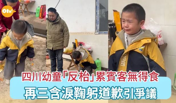四川 幼童 「反枱」累宾客无得食 再三含泪鞠躬道歉引争议