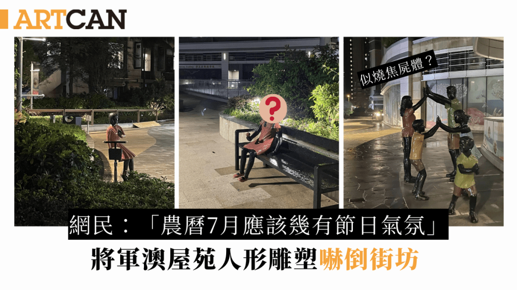 将军澳屋苑人形雕塑吓倒街坊 网民嘲超诡异似烧焦尸体:农历7月好有节日气氛