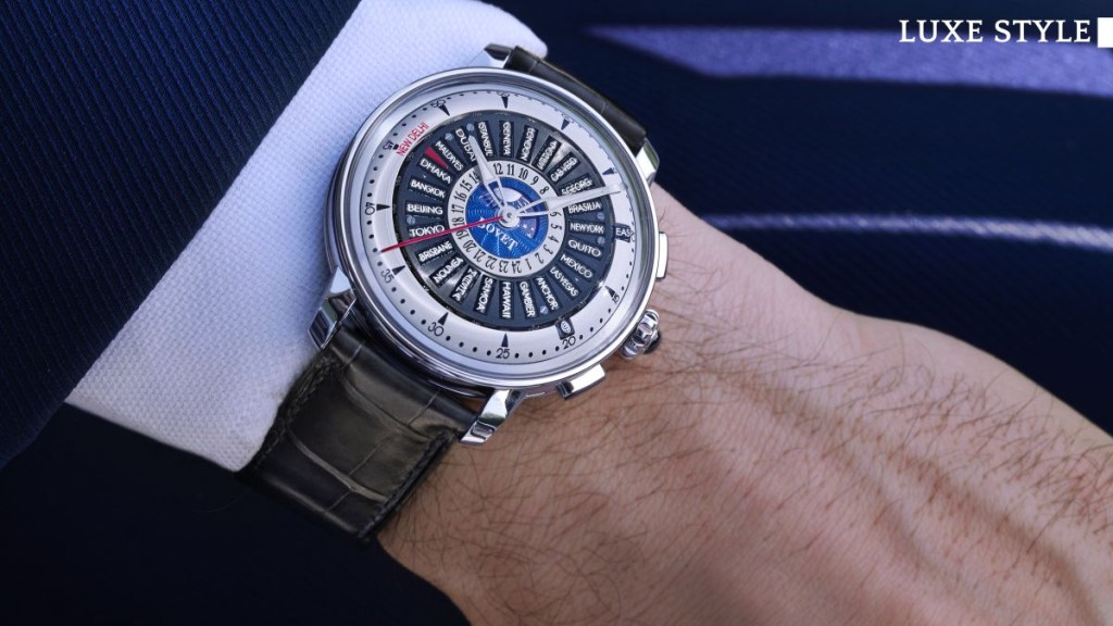 机场候机室挂有显示世界各地时间的墙钟,全球共有24个时区,若要显示世界时间便要24个墙钟了!腕表要与全球接轨,莫非要24枚腕表才能做到?其实很简单,一枚世界时间腕表(Worldtimer)已足够。世界时间显示是一项怎样的功能?一般Worldtimer表盘设有三层,由内至外分别是以12小时制式显示的时分盘、日夜显示的24小时刻度圈,以及印有全球24个时区的城市名称圈。先根据所在地的时区预先调校时、分针,并对齐24小时刻度圈和所在城市名称,全球时间一目了然。此世界时间显示系统由瑞士制表师Louis Cottier于1931年发明,后来百达翡丽将之发扬光大,并在1937年推出全球首款世界时间腕表,至今已近一个世纪。