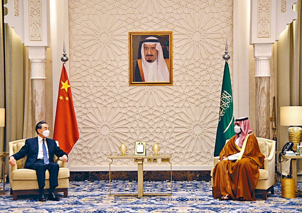 (星岛日报报道)国务委员兼外长王毅正展开中东六国的访问行程,首站抵达沙特阿拉伯,分别与沙特皇储穆罕默德(见图)和沙特外长费萨尔会面。王毅称,发展两国关系是中国中东政策的优先方向,感谢沙特在涉疆、涉港、涉台等问题上给予中方支持。