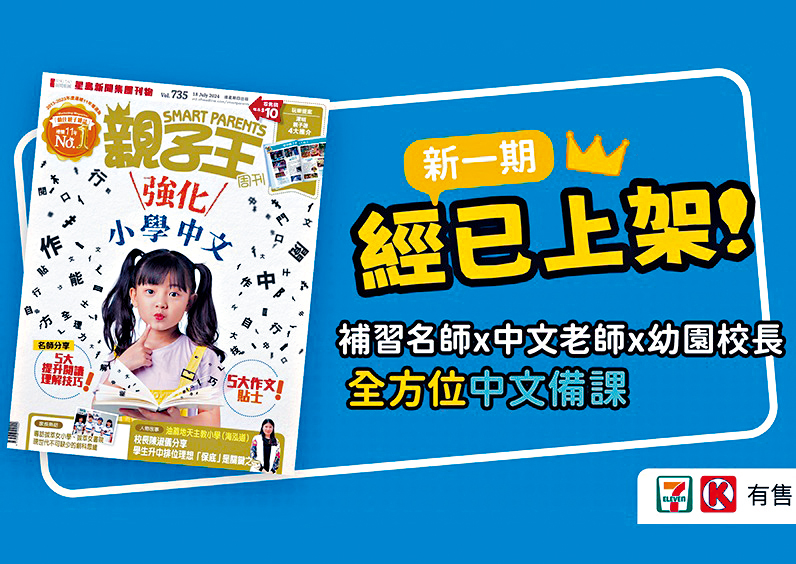 时下小学生普遍于英文科表现不俗,可是Channel一转到中文却顿时迷失方向,让我们从中文最主要的阅读理解及作文入手,听听补习名师、小学中文科老师分析问题所在再击破难点;升小一家长亦可听幼稚园校长的提点,为孩子打好中文基础。另搜罗了一系列相关练习本,一起为孩子备课中文!新一期《亲子王》于7-11及OK便利店有售,即睇更多升学、教养资讯。