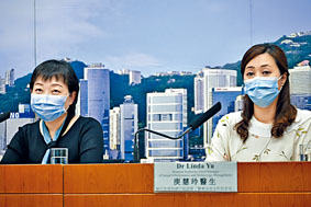 本港昨新增两宗确诊个案,其中一名十五岁英国返港的男学生,及一名由荷兰返港的六十一岁女子。该名女子四月十六日曾发烧及喉咙痛,五月十四日返港,当时样本呈阴性。她其后回到深水埗海丽邨家居隔离,检疫期间咳嗽,致电予衞生署热线,再检验后确诊。衞生防护中心传染病处主任张竹君(见图左)表示,患者经过多次检测后才有弱阳性,相信病毒已到「水尾」。
