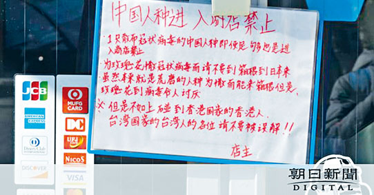 防冠状病毒 日店家禁中国人入内