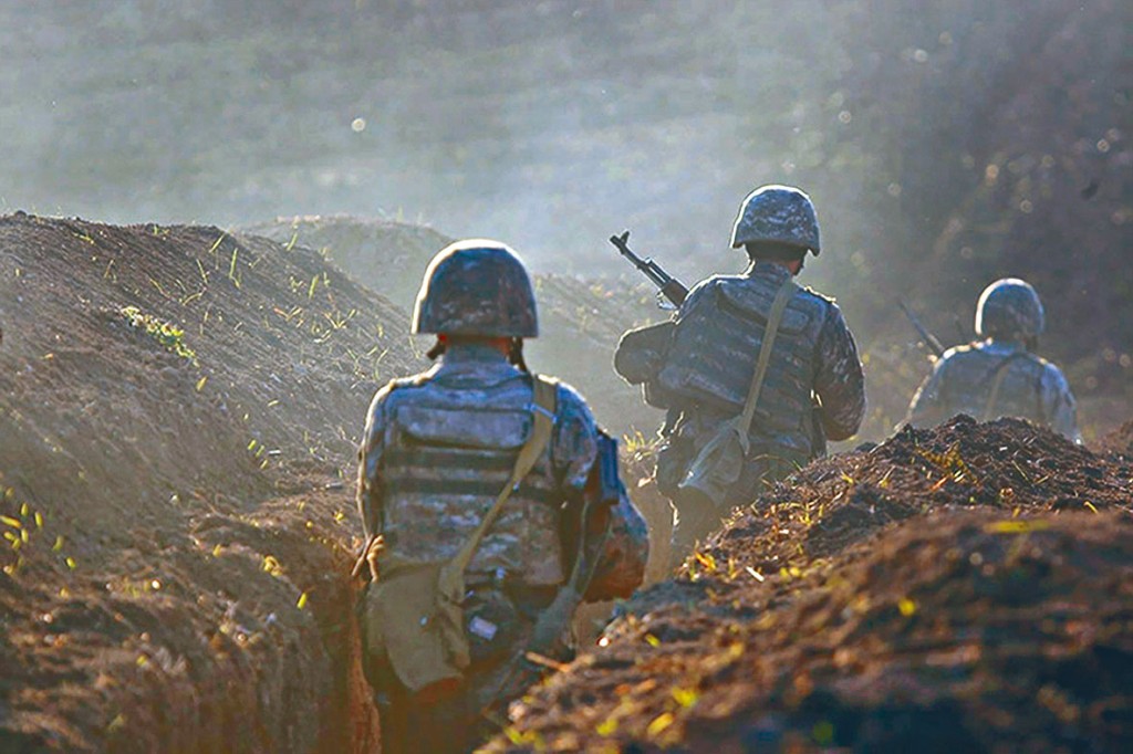 阿塞拜疆国防部发言人称:「亚美尼亚一方一定不要忘记,我们的军队拥有的国家级导弹系统,有能力精确地攻击(亚美尼亚)梅察莫尔核电厂。」那座于前苏联时期建造的核电厂位于亚美尼亚首都埃里温附近;接近土耳其边界,而土耳其是阿塞拜疆的盟友。亚美尼亚外交部指责阿塞拜疆发出「种族灭绝」威胁。阿塞拜疆和亚美尼亚都是前苏联的一部分。两国独立后,为了边境山区纳戈尔诺——卡拉巴赫的主权爆发战争。国际社会承认该山区是阿塞拜疆的一部分,但长期被亚美尼亚裔人占领。过去数天的武装冲突已造成十七人丧生。图为亚美尼亚士兵在两国边境部署。