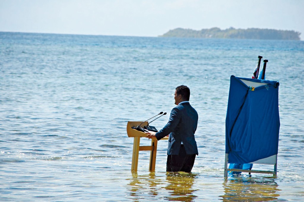 图瓦卢外长海中演说 警示气候威胁
