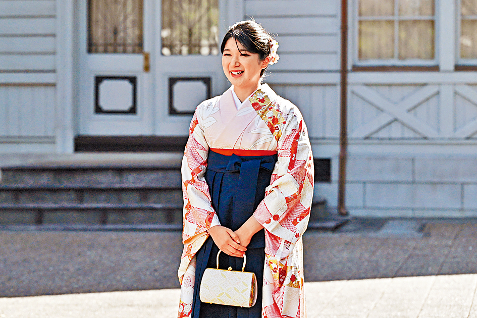 日皇德仁与皇后雅子的独生女敬宫爱子内亲王,本月从学习院大学文学院的日本语日本文学系毕业。她昨日穿着樱花色「振袖」(未婚女性穿的华丽和服)与深蓝色裙子,面带笑容地表示「度过了充实的4年」。