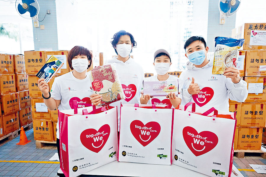 (星岛日报报道)由香港精英运动员协会筹办的爱心送暖行动刚于周六圆满结束,为二千五百名独居及低收入家庭送上爱心礼物包。壁球名宿赵咏贤、前单车女将李燕燕(右二)等一同包装物资,至于桌球神奇小子傅家俊、跳马王子石伟雄等亲笔写上心意卡,为各家各户打气。