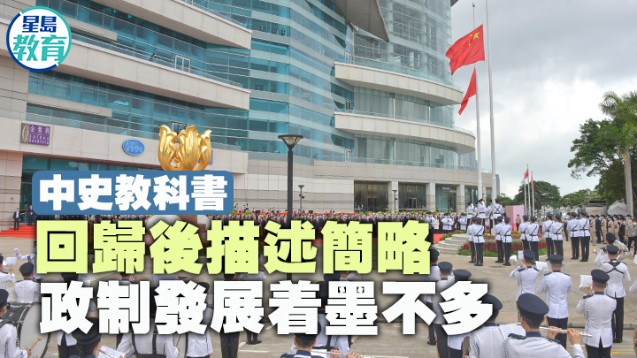 今年是香港回归二十五周年,「香港特别行政区的成立和发展概况」首次列入初中中史科课程,作为中三生必修的「预期学习内容」之一。在通过评审的新版教科书,对于回归后发展均相当简略,对政制发展着墨不多,有课本仅引用《基本法》指港人集会及游行等权利获得保障,全部教科书均无提及「占领中环」等事件。