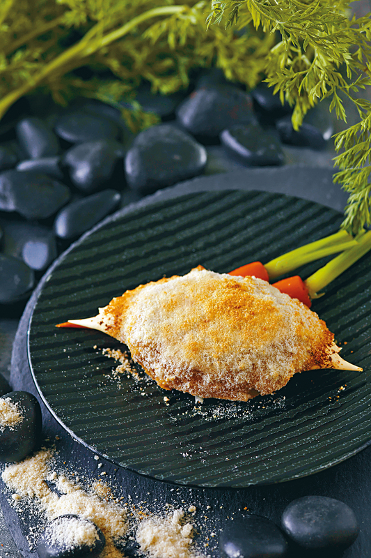 蟹馔风味多变,清蒸原汁原味,配搭不同烹法更令滋味倍增。星荟新推出的时令蟹菜,将经典结合新派元素,为食客炮制滋味蟹菜。鲜蟹肉焗蟹盖是上世纪初的名菜,烹法夹杂中西,须以人手去壳拆肉,蟹盖酿入芝士、洋 、面包糠烘至表面金黄,馅料保持滋润,考大厨控制火候功力。味道鲜美的冬瓜蟹肉鲍鱼卷,以冬瓜片包裹冬菇、蔬菜和鲍鱼丝,加入蟹粉芡烩煮,鲜香不腻。取材酸菜鱼的酸菜蟹肉煎斑球,藉醒胃酸菜突出蟹肉鲜味,煎斑球肉质丰厚且嫩滑爽口。