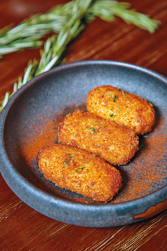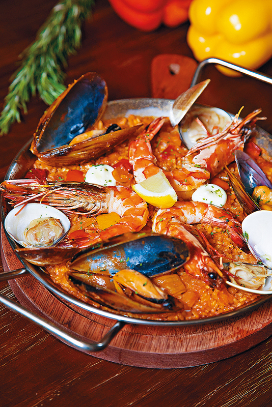 吃传统西班牙菜,必点西班牙海鲜饭。这店按传统方法制作,炒香洋 、红椒及黄椒,以适量香料拌炒西班牙Bomba米,注入自制汤底将生米煮熟,随即加入本地鲜沙白、澳洲蓝青口及越南有头虎虾,焗至饭微焦,饭粒吸满海鲜精华,非常美味。口感丰富的炸忌廉火腿球,用牛油炒香洋 碎,加面粉和鲜奶煮至幼滑稠身,拌入风干火腿碎搓成,蘸面包糠炸至外脆内软。烤乳猪亦是西班牙名食,选用原只乳猪起肉,慢煮十二小时再焗至皮脆肉松化;伴吃的酱汁以自制猪肉汁拌入法国干杂菌碎,为酱汁添菌香。