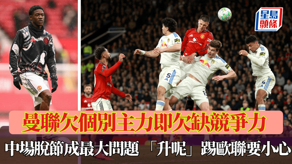 曼联在周一英超主场1:2不敌列斯联,虽然仍然保住联赛第3名,但球队暴露出在一些环节与顶级水平仍相差甚远。今场红魔在2、3个关键位置有主力倦勤,竞争力大幅削弱,证明正选与后备之间的差距甚大。当中以中场问题最严重,明奈(Kobbie Mainoo)因伤缺席,中场脱节缺乏串连,运转生硬,球队如果来届重返欧联,在阵容上需要下苦功。