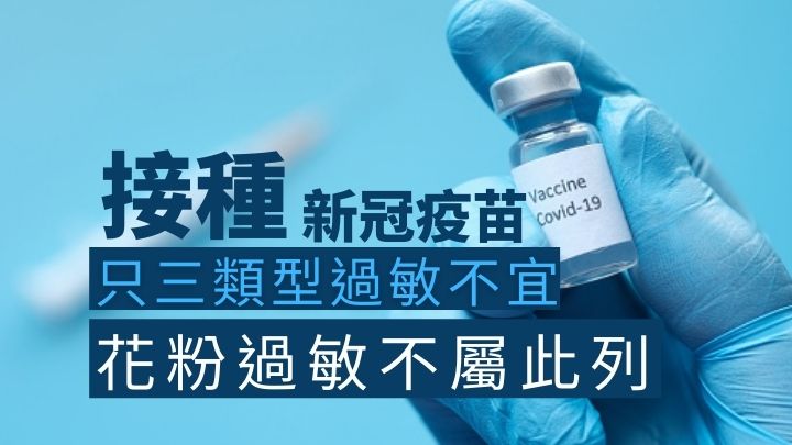 最近坊间有指,花粉过敏症患者,因属于过敏体质人士,故不宜接种疫苗,当中包括新冠疫苗,而事实上,根据中国疾控专家作出的最新指引, 专家直言以上说法失实,并证实现时只有以下三种的过敏症情况,不宜接种新冠疫苗。