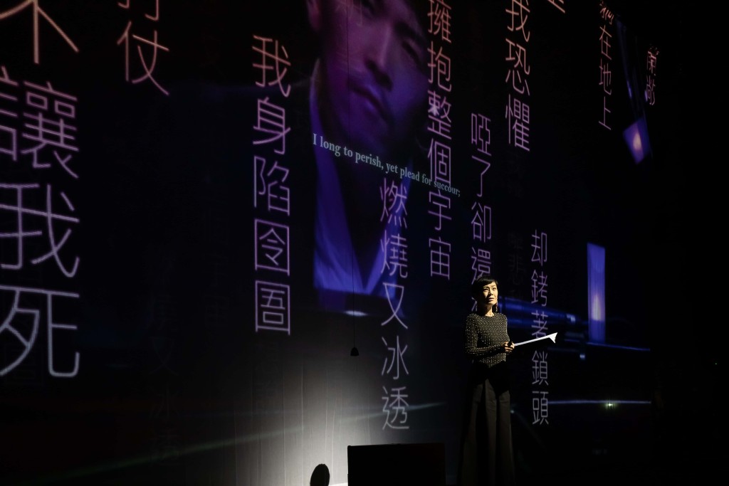 进念以多媒体效果、灯光、薄雾打造一个迷幻的境界,让入座的观众,即使戴上口罩,也可以暂忘现实中的病毒,投入音乐、说书、诗篇与光影建构的诡谲爱情世界之中,而我是感动的。