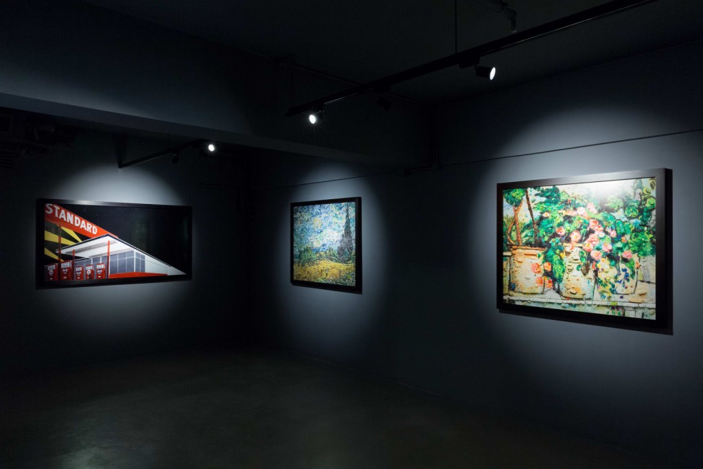 艺术家将长期以来孜孜不倦收藏的旧明信片,制作出一系列异想天开的图像,包括上海的天际线、中国长城、旧金山辉煌的金门大桥,及以义大利艺术家阿里基罗 · 波艾提(Alighiero Boetti)著名的刺绣作品为蓝本,完全由原始颜料渲染而成,插满旗帜的世界地图。展览亦精选艺术家「手作(Handmade)」系列的独特佳作,该系列结合他典型的摄影作品,并融入实物和图像,创造出令人著迷的渐变效果,以探讨感知和物质性的概念。其中三件「手作」作品的材料和图像,灵感取自穆尼斯过去十年中多次到访香港的经历,取名为《Letter Rack Hong Kong》。