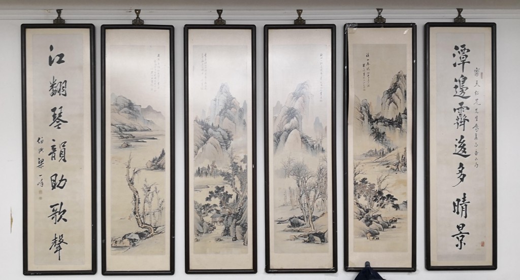 谈梁伯誉一章,提到中环莲香居壁上的四屏山水和对联。四屏山水为梁氏1938年到港所作,是仿明代沈石田和清代华罗山人画法,落款「梁伯与」。四屏山水两旁的「对联」却是「乌龙对」。庄志岗考证,下联「江翻琴韵助歌声」署名「白与梁一峰」,应是同期所作,上联「潭边霁逡多晴景」并非梁氏手笔,联文也不对仗。据庄先生所知,「伯誉」是后来张大千为梁氏所改,原因是对其所画山水称赞有加,认为「与」加「言」定能誉满艺坛。下次去莲香楼,叹一盅两件之余,细心赏画添雅兴。