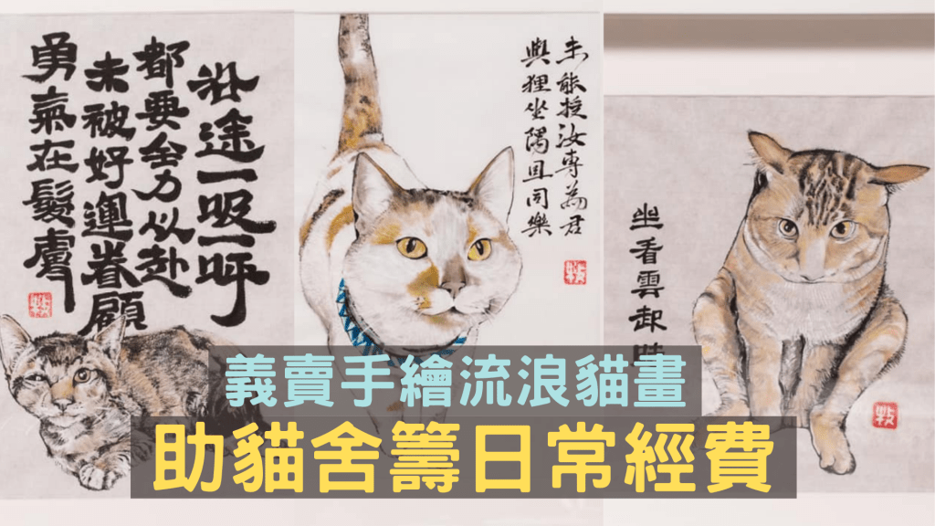 他的画作或许算不上超卓,却溢满了爱,说的是本地手绘画家OH Youmademyday的呀牧,特意为流浪猫收容所遇猫堂绘画的八幅流浪猫画,现正于太古城的诚品店展出及义卖,借画作分享浪浪的故事。