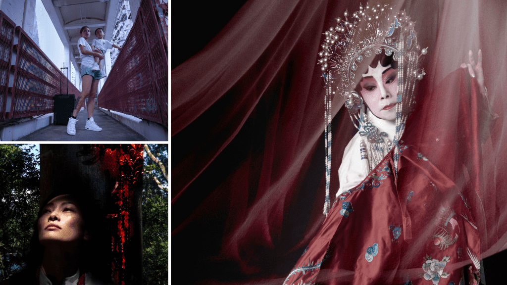 唐涤生笔下的长平公主,历尽国破家亡的悲剧人生,生命每个阶段都充满挑战,然而其外刚内柔、遇难而不屈的性格特质,却非常突出,对照于现时疫下的香港,或香港人,似乎容易产生共鸣。「对我来讲,不论是任白或长平公主,她们都很美,那种美,不单是外表,是渗进骨子灵魂内。她们都很有想法,这特质在不少港妈身上都找到,所以我选取了一位妈妈,作为我的长平公主。」是次参展人之一、摄影师卢玉莹的作品《我2022年的「长平公主」》,将长平公主想像为一位港妈,平时是「港女」,骨子里却极硬净,遇事时总能一力担当,抱着小孩拉着行李喼,无畏凝视困难重重的前方。向以拍摄纪实照为主的卢玉莹,作品内还对现今香港社会提出了多个问题,希望让大众思考。