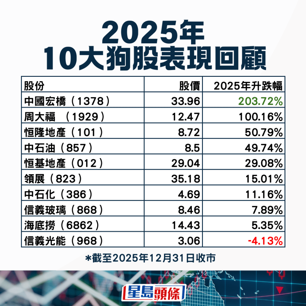 港股「狗股」去年榜首劲升2倍 2026新名单出炉 专家点名3只可吼 一只稳赚6厘
