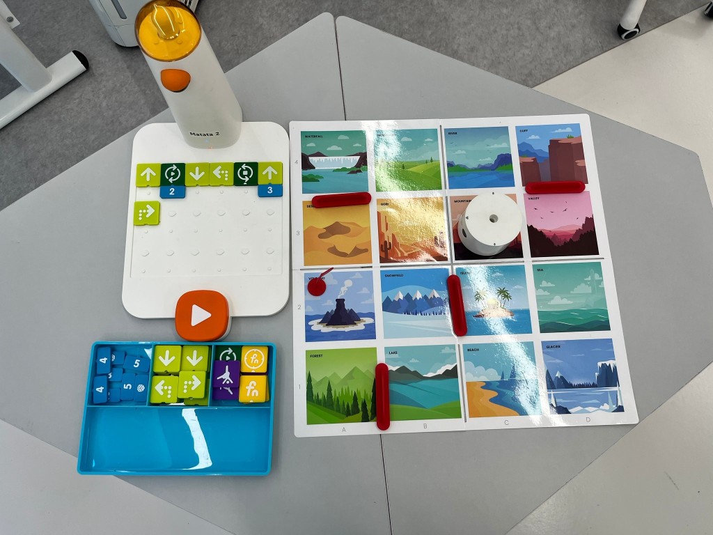 Matatalab教具就是透过实体积木来学习编程。彩色积木上的方向箭头、数字标记和循环符号,都经过精心设计,让低年级学生可直观理解编程概念。每块积木底部都藏有导电涂层,当学生将积木拼接到编程板上时,就形成一个完整电路系统。机械人顶部的光学感应器会扫描这些积木组合,将实体指令转化为行动代码,就像摩斯密码一样精准传达指令。
