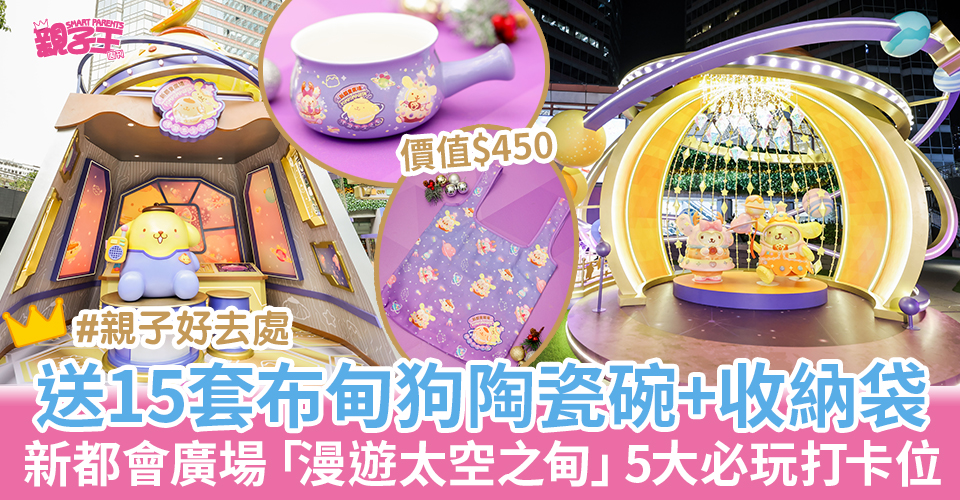 步入12月,圣诞气氛变得浓厚,就连人见人爱的布甸狗都即刻出动与大家过快乐佳节!布甸狗于这个圣诞在新都会广场跟大家展开「漫游太空之甸」奇幻之旅,更会与好友Macaron及Muffin等组成太空冒险小队,以全新炫亮型格太空装造型亮相,与大家一起勇闯梦幻闪亮的银河星系!场内特设5大户外打卡位,及期间限定店,《亲子王》更预备15套「布甸狗单柄陶瓷碗」及「星际收纳袋」送给大家,提早庆祝快乐圣诞!