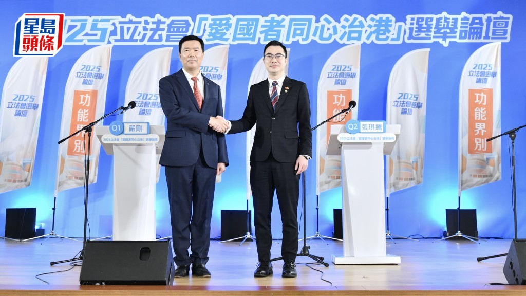 政府主办的立法会「爱国者同心治港」选举论坛,今早(21日)就商界(三)组别进行辩论,候选人包括现任议员严刚,以及民建联的张琪腾。