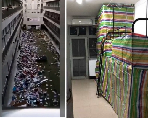 不过有网民透露,指控「武汉软件工程职业学院的学生寝室被暴力征用」。据视频可见,工作人员将学生寝室内门板拆掉,桌面、书柜等遭全部清空,换上隔离设备。而学生的私人物品更全包被抛下楼,楼下场面如同垃圾回收站,相当凌乱。
