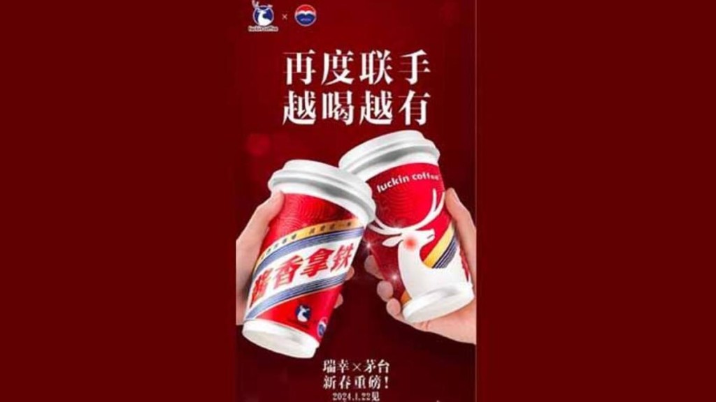 瑞幸咖啡在微博发文预告,将与茅台再度合作,于1月22日推出新春重磅联名饮品,强调「越喝越有」。内媒报导,这款饮品是龙年特制的酱香巧克力饮品,一位瑞幸咖啡工作人员表示,新饮品就是一款热巧克力饮品,里面有巧克力预调液和白酒风味厚奶,但不含咖啡;而厚奶内则含有茅台酒。至于产品定价,预计与去年推出的酱香拿铁差不多。