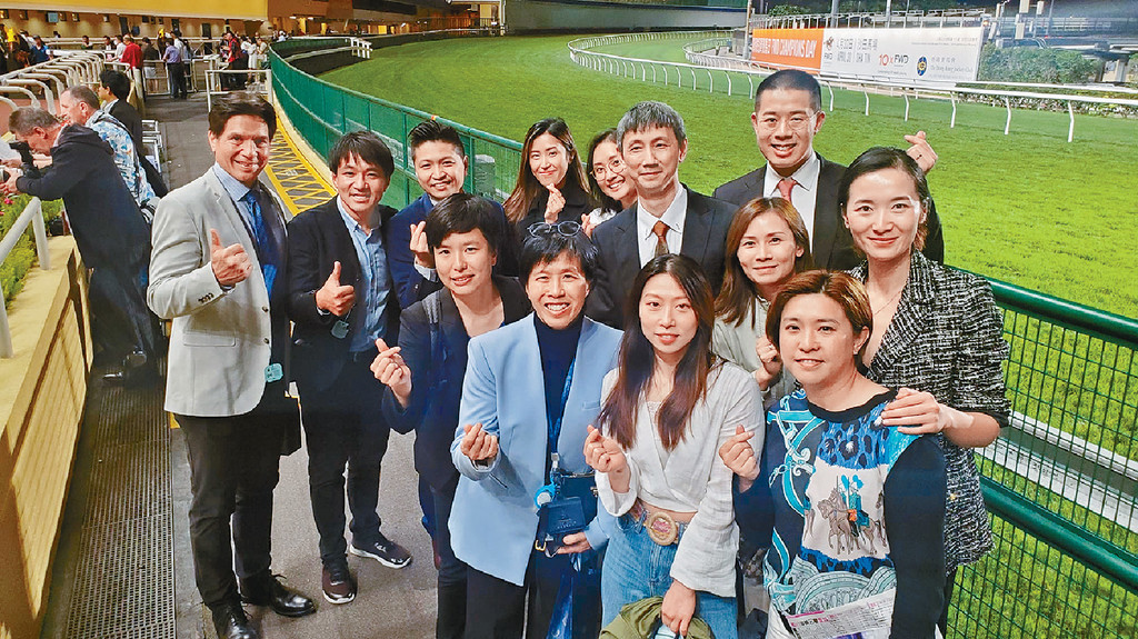 昨晚骑术学校校长陈念慈带领多位香港精英运动员参观马场,计有划艇谢家德、单车黄金宝、南拳郑家豪、网球张玲、体操黄晓盈和壁球赵咏贤等,各人显得兴致勃勃,并即场合照留影。
