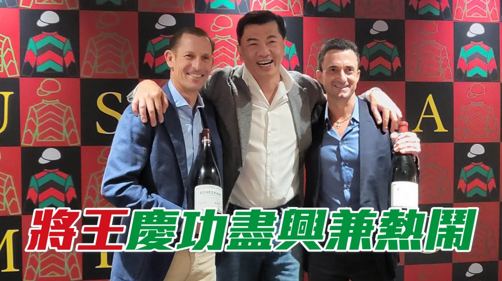 「将王」马主张舜清和太太为了答谢韦达和马房员工的努力和辛劳,昨晚在酒店摆庆功宴,场内展有「将王」的珍贵奖杯、以及世界知名品牌送给张氏伉俪印有「将王」的香槟供宾客打卡,美酒佳肴,韦达更不时与马房员工对饮,打成一片,尽兴而归。布文和他的太太笑言,昨晚第一次出席如此盛大的马房庆功宴,大开眼界。