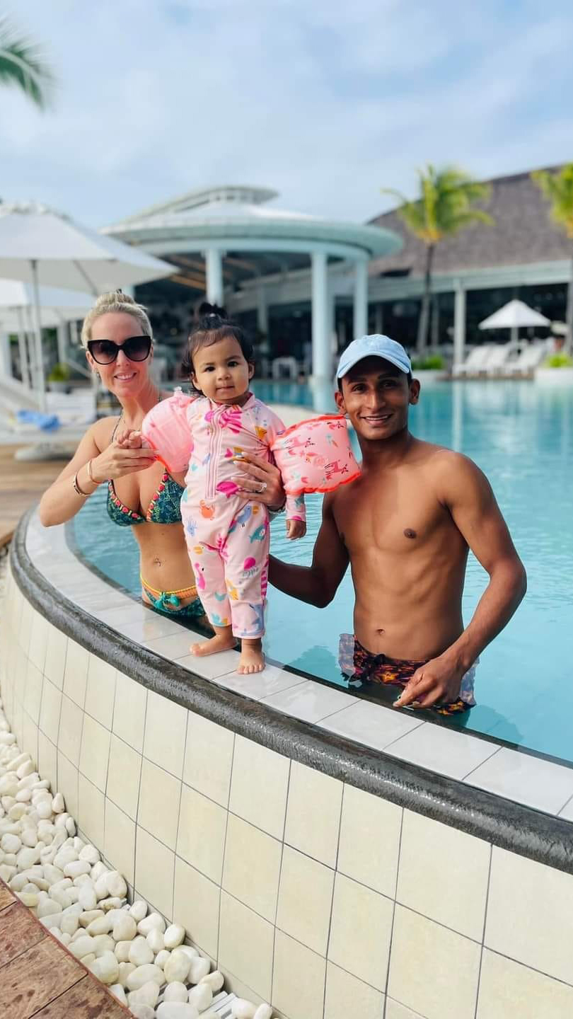 田泰安向来十分重视家庭生活,今个暑假他举家返回家乡毛里裘斯探望亲友,早前和太太Xaviere补办婚礼。