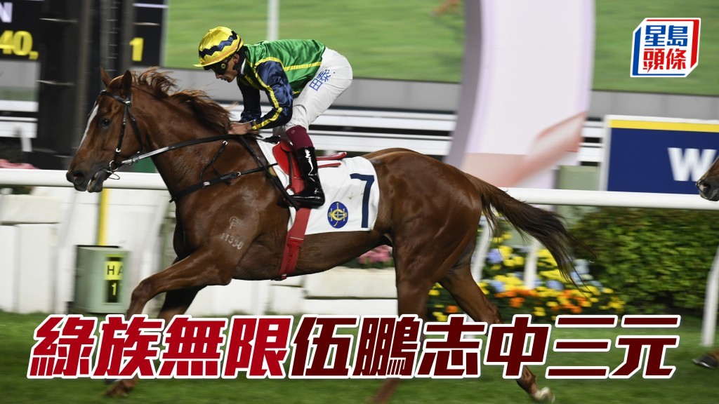 今晚尾场三班千二米,伍厩的「绿族无限」在田泰安胯下轻松越过「气势」,顺利取得连捷,伍鹏志亦连中三元,不过由于蔡厩的「气势」跑第二,令他以四十分成为练马师王冠军 。