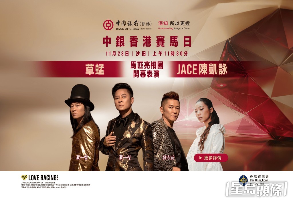 中银香港赛马日「浪漫勇士」强势复出 歌唱组合草蜢及歌手JACE陈凯咏献唱