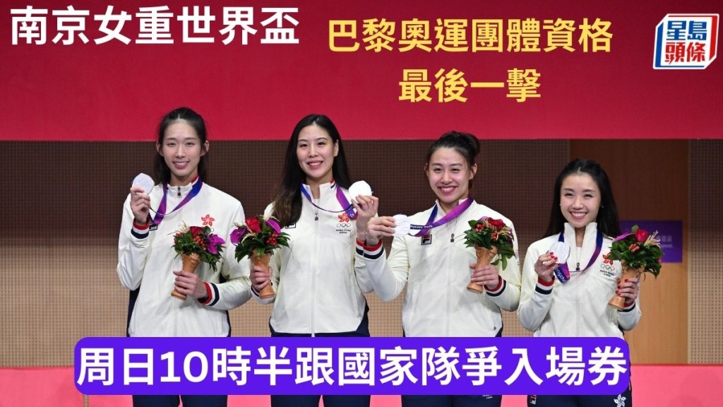 以世界第1的江旻憓(Vivian)、世界18的佘缮妡(Kaylin)为首的女子重剑击,周日早上10时半将在南京世界杯团体赛跟东道主的国家队争巴黎奥运资格,谁胜就大有机会取得奥运团体入场券(并附带3张个人赛资格)!