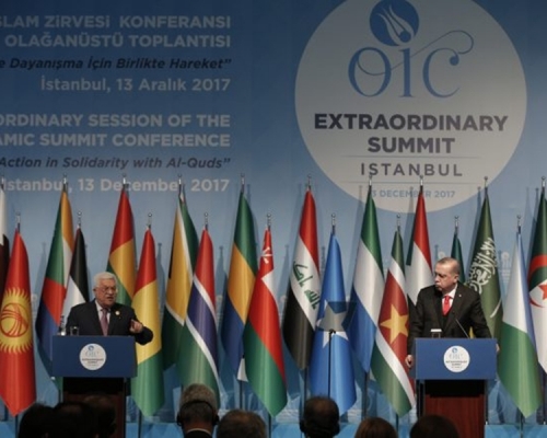 伊斯兰合作组织五十七个穆斯林成员国领袖,周三在土耳其伊斯坦布尔举行特别峰会,会后发表联合公报,宣布承认巴勒斯坦国,并承认东耶路撒冷为巴勒斯坦国的首都。巴勒斯坦自治政府主席阿巴斯则警告,美国已不可能在中东和平进程扮演任何角色。