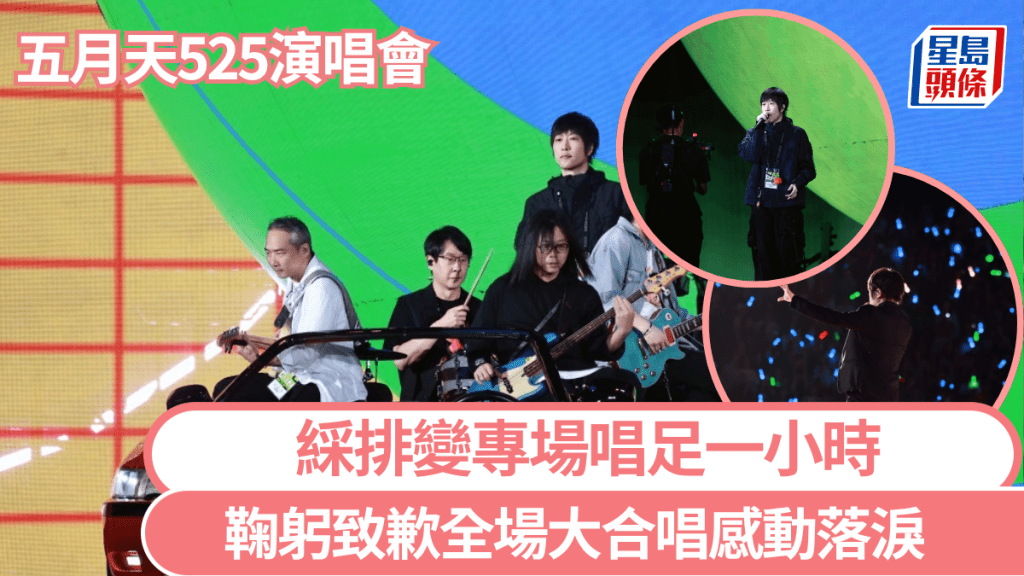 五月天彩排变专场唱足一小时 阿信后台换裤画面曝光派福利 鞠躬致歉全场大合唱感动落泪