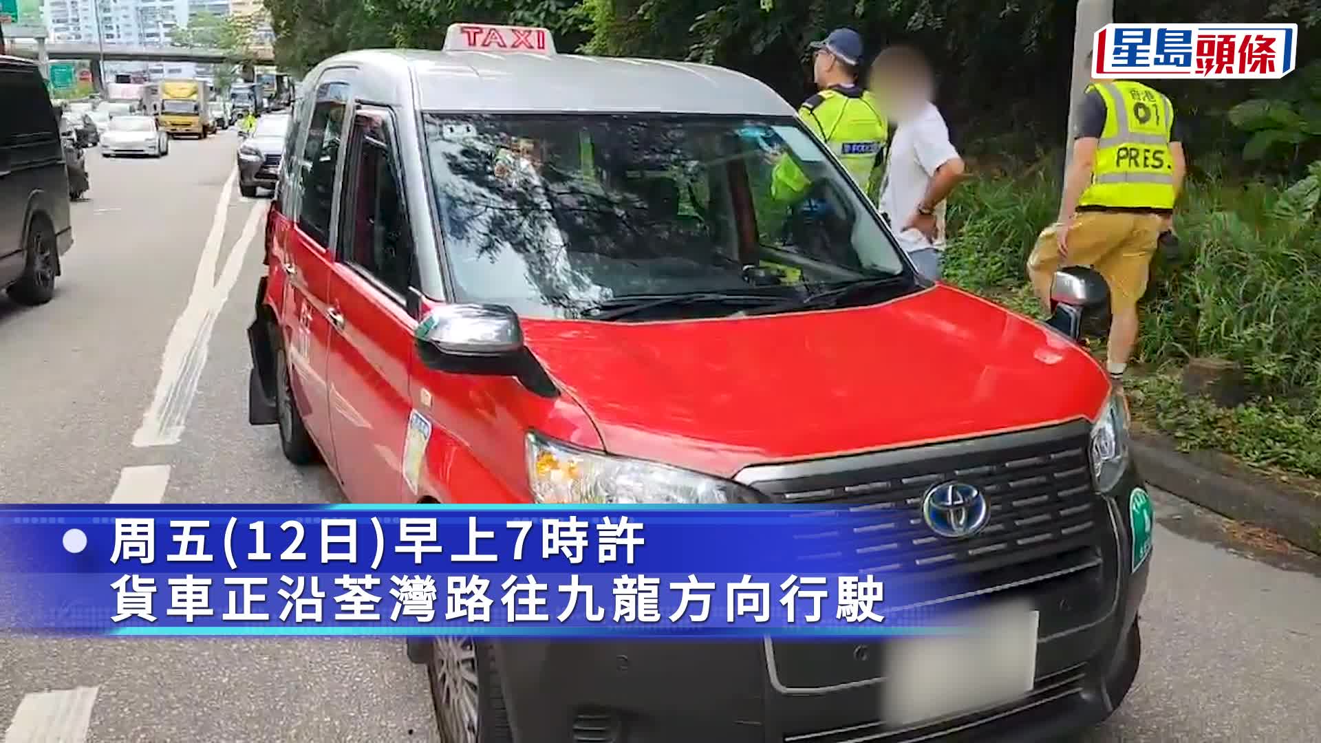 荃湾路的士与卖鱼车相撞 后窗玻璃「开大洞」