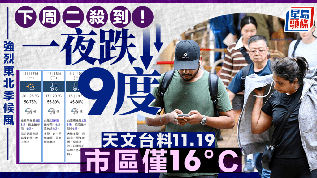 天气︱强烈东北季候风下周初杀到!11.19市区气温跌至16度 新界多区低见14度