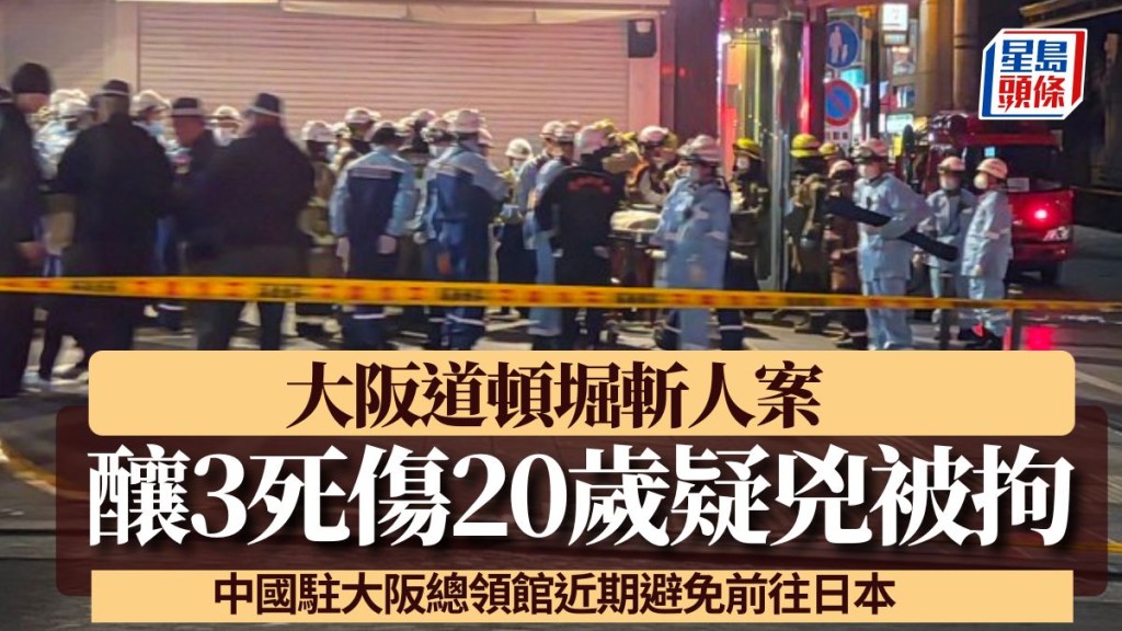 大阪道顿堀斩人案︱酿3死伤20岁疑凶被拘 中国驻大阪总领馆:近期避免前往日本