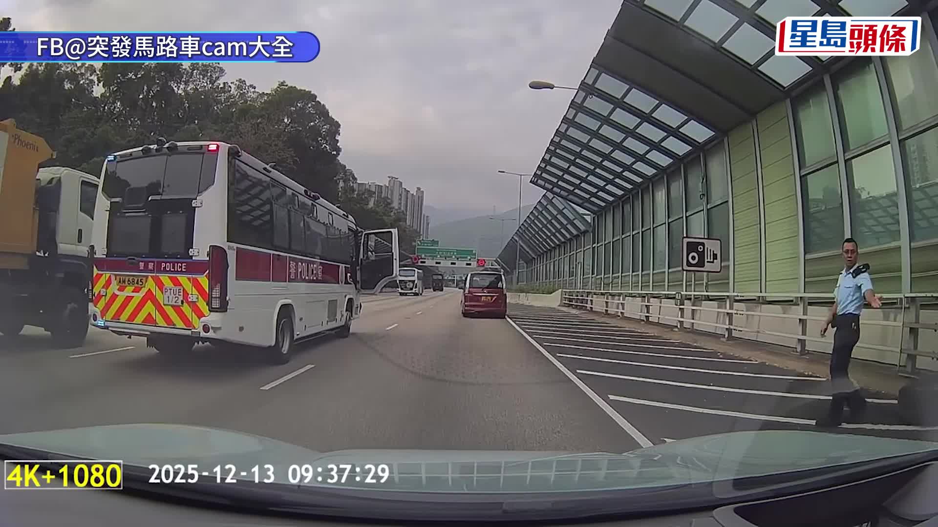 重播 立即播放 有片|吐露港公路车辘飞脱 男警临危不乱起飞脚踢跌 网民大赞:快狠准 吐露港公路有轮胎滚行百米,驶经车辆险遭撞及,幸有警员临危不乱,及时「起飞脚」踢跌轮胎,有惊无险。多名网民赞警察的行为,又指他处变不惊:「值得加奖!香港警察加油!」 网上今日(14日)流传一段影片,片段显示事发时间为昨日(13日)早上9时37分。当时吐露港公路车水马龙,往大埔方向有数十辆车行驶,惟至天钻附近时,所有车突然收慢,未几有一个轮胎沿快线旁边的影线缓缓滚行,犹如「自动导航」一样。一名男警从P 港闻 2025-12-14 19:23 HKT 阅读更多