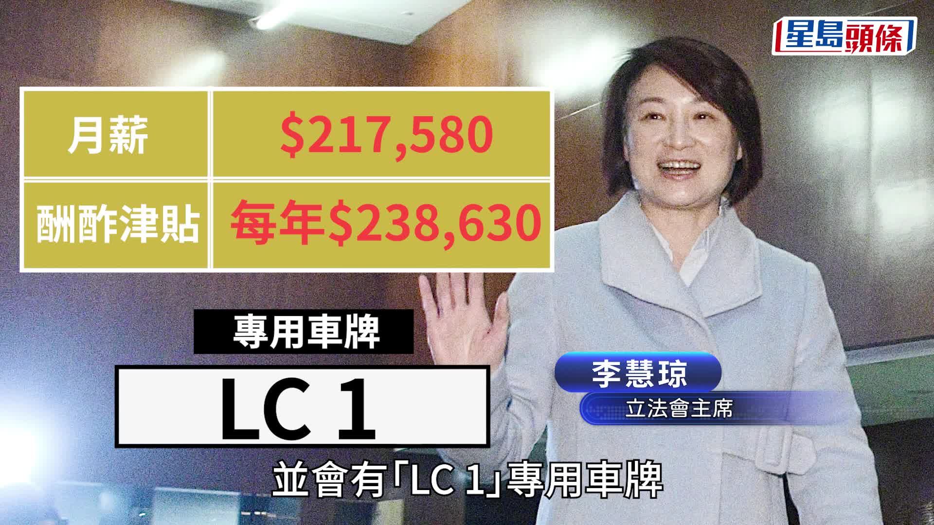 重播 立即播放 李慧琼当选立法会主席 月薪跳升至逾21万元 享「LC 1」专用车牌 还有这些福利... 身兼全国人大常委的民建联李慧琼,以5票之差险胜金融界议员陈振英,成功当选立法会主席,亦是继民建联创党主席曾钰成后,再有民建联成员出掌立法会。立法会主席具宪制地位,在特区排名第七,仅次于司长。 享主席办公室、「LC 1」专用车牌 李慧琼今次成功「升呢」,荷包亦大有进帐,她过去4年担任内务委员会主席,月薪为163,190元,出任「大主席」后,月薪增至217,580元,即是其他立法会议员月薪108,79 港闻 2026-01-08 16:46 HKT 阅读更多